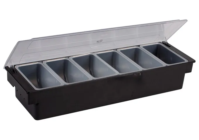 Condiment Holder, 6 Compartment, Black Plastic Base